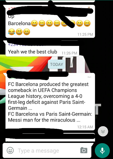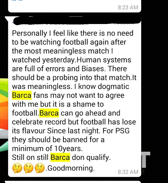 making display last night. Barcelona simply displayed magic as they did what no other team had done before in the history of the UEFA champions league by beating French club PSG, 6-1 at the camp Nou after suffering a 4-0 thrashing in the first leg. Below are reactions from some Uniben Students….