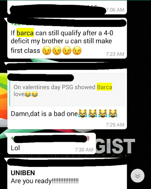 See funny reactions by some Uniben Students over Barca Vs PSG match